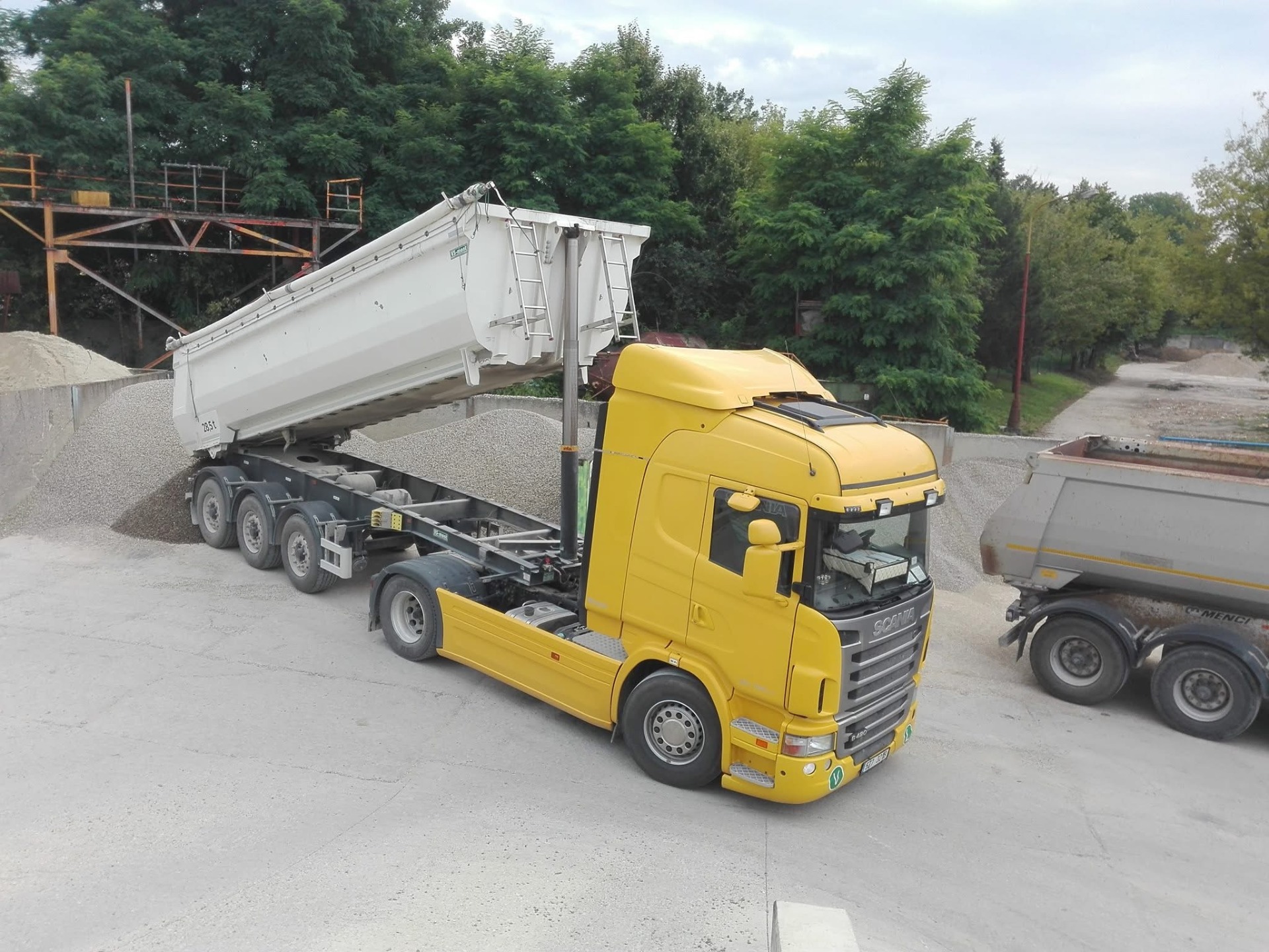 Disponujeme vlastní kamionouvou dopravou tahače s návěsy. Jezdíme v rámci ČR a SK. Naše soupravy můžou naložit na vnitru 30 tun a na mezinárodní dopravě až 27,5 tun. Převážíme písky, štěrky, kamenivo, vyosévky, recykláty a mnoho dalšího.